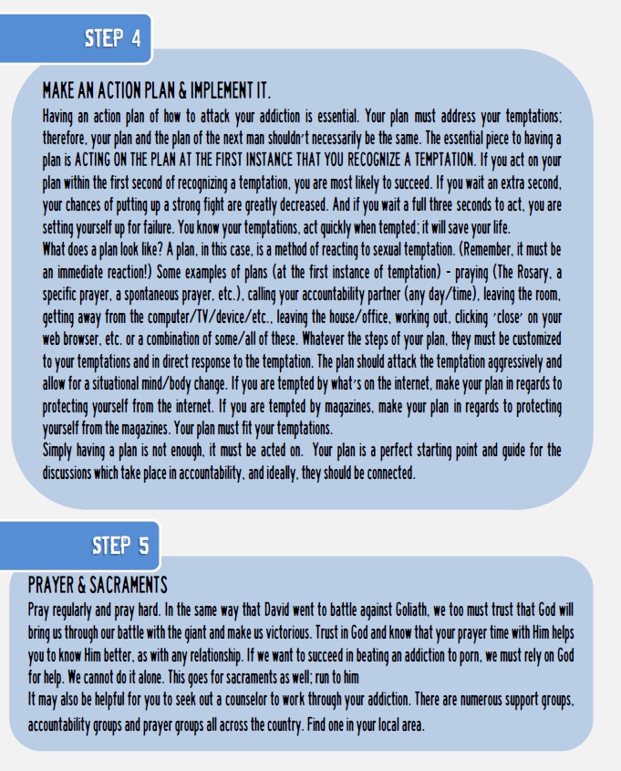 Get the “5 Step Plan” HERE. If you have any questions about anything written above, please feel free to contact us at contactus@truemanhood.com. Don’t know where to start? Don’t know who to choose for an accountability partner? Email us.